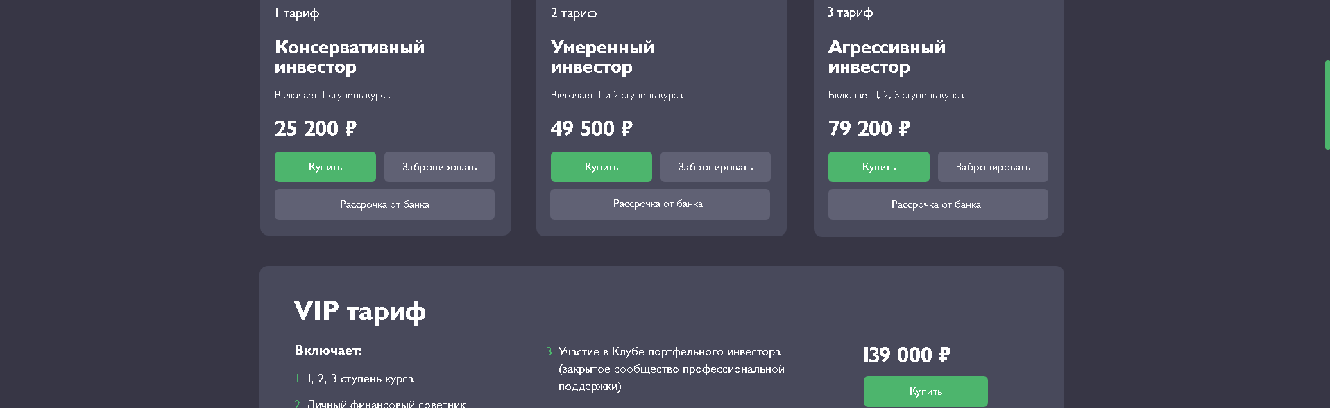 Нам предлагают попробовать бесплатный онлайн марафон «Я — Инвестор», он состоит из нескольких видеороликов. Обычно в таких вебинарах показывают какая «хорошая» школа, чтобы узнать больше нужно купить платный курс. Раз речь уже зашла за деньги, давайте рассмотрим стоимость в среднем она варьируется от 25 000 (за одну ступень курса) до 139 000 (за весь курс). Расценки конечно у этой школы далеко не детские!