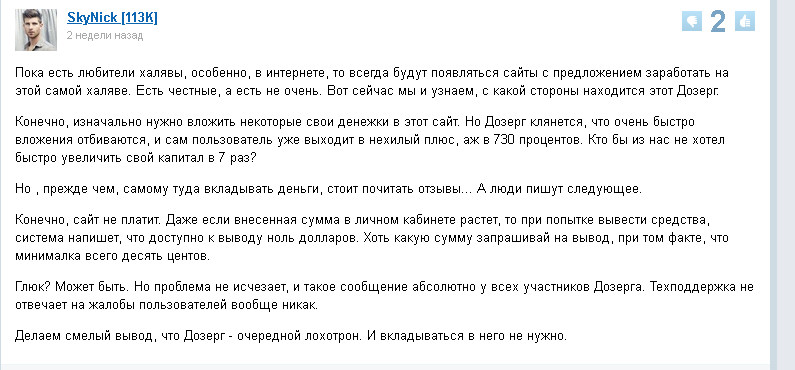 С появлением платформы в ютубе начали активно появляться отзывы, от блогеров известных тем что им платят за рекламу. В своих обзорах они показывают, как легко заработать на Dozerg, как легко выводить средства. Однако, у менее популярных личностей можем заметить всё с точностью, да наоборот! Даже если на балансе достаточно средств, вывести их не удаётся.