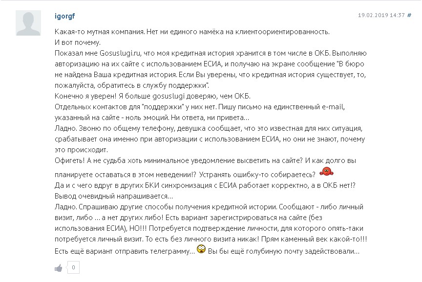 ОКБ является одним из крупных бюро кредитных историй. Поэтому спросы с него должны быть жестче, ведь компания существует не один год, наверняка успела выработать успешную и рабочую схему управления кредитными финансами. Но чем больше с вами будем разбираться, смотреть отзывы, тем невольно будем сравнивать ОКБ с новичками дела.