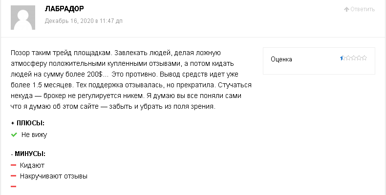 Если вы начнете изучать отзывы об этой компании, вы заметите, что на каждые 8-10 положительных отзывов есть 1-2 отрицательных. Особенно много отрицательных отзывов от трейдеров. Потому что платформа ZuluTrade предлагает некий гид по торговле, в котором есть глава, называющаяся «Поведение, не соответствующее правилам торговли». И там дословно написано, что просадка ни при каких обстоятельствах не должна достигать 700 пунктов. То есть, по сути, ZuluTrade устанавливает жесткие правила торговли для трейдеров. Хотя в своих правилах пишет, что никакой ответственности за деятельность трейдеров не несут. Ответственности не несут, но жестко регулируют — это как понимать? Причем, это правило про 700 пунктов упоминают трейдеры, потому что именно на основании него платформа ZuluTrade просто блокирует счета и замораживает деньги. Фактически, это мошенничество в открытом виде и об этом мошенничестве пишут многие трейдеры.