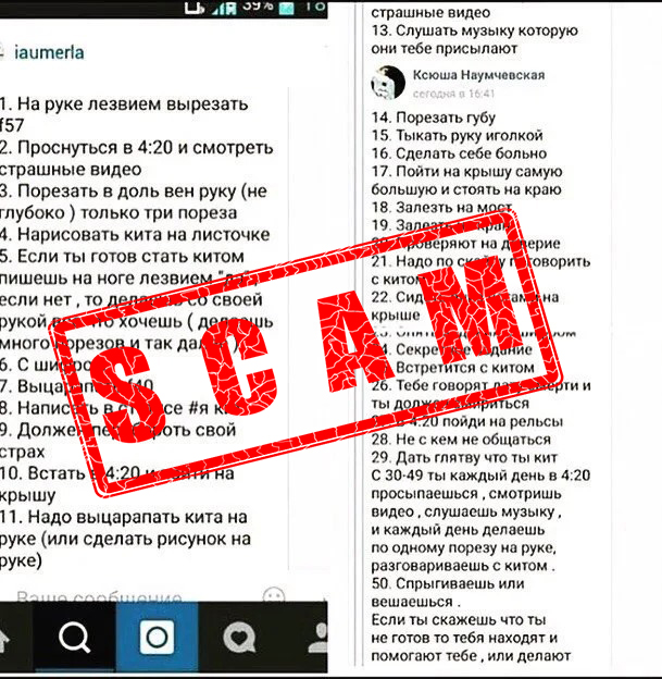 Об этом уже переговариваются подростки в школах и их предки в родительских чатах. Читательница StopRazvod рассказала нам о том, как её 13-летний сын скачал себе и своей 11 летней сестре PunkPanda для заработка криптовалюты на общении. А затем она заметила царапины на лице дочери. Как оказалось, она попала в группу, посвященную «синему киту» и один из участников уже предлагал стать её куратором в смертельной игре. Царапины на лице было одним из первых заданий.