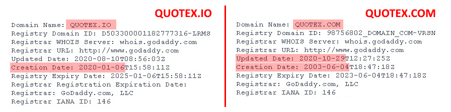 Сам брокер пишет, что проект стартовал в 2019 году. В штате компании высококвалифицированные специалисты с общим стажем работы более 200 лет. Мы проверили домен сайта quotex.com и обнаружили, что он был перекуплен у прежних владельцев. До 29 октября 2020 года сайта Quotex ещё не было. Это хорошо видно по скриншотам из Веб-архива. И только последние 8 месяцев компания начала работать как брокер бинарных опционов. Соответственно, заявления о стаже работы компании — это ложь.